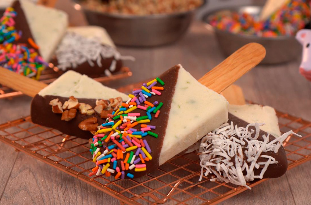 INGREDIENTES: PROCEDIMIENTO: Parte 1 – Helado de coco: 1. En un recipiente con capacidad de 10L, agrega 5.5 L de Base para helado Mesclaya®, Ron