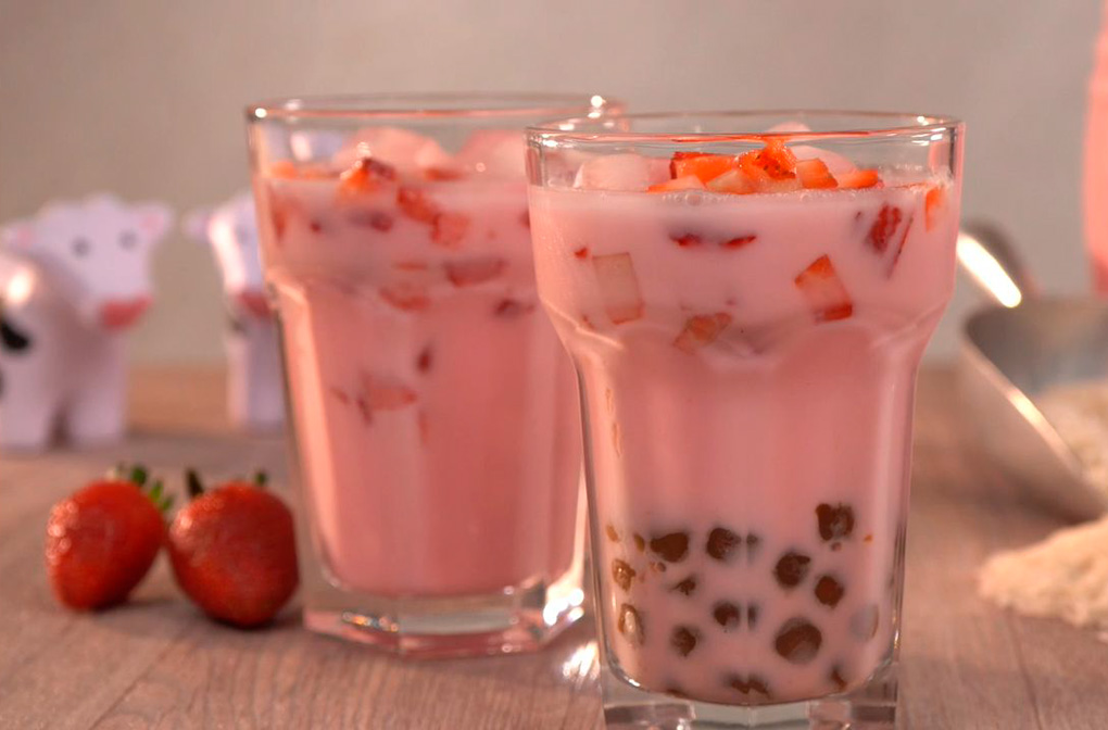 - Al servir, decora con toppings al gusto (tapioca y fresa troceada).