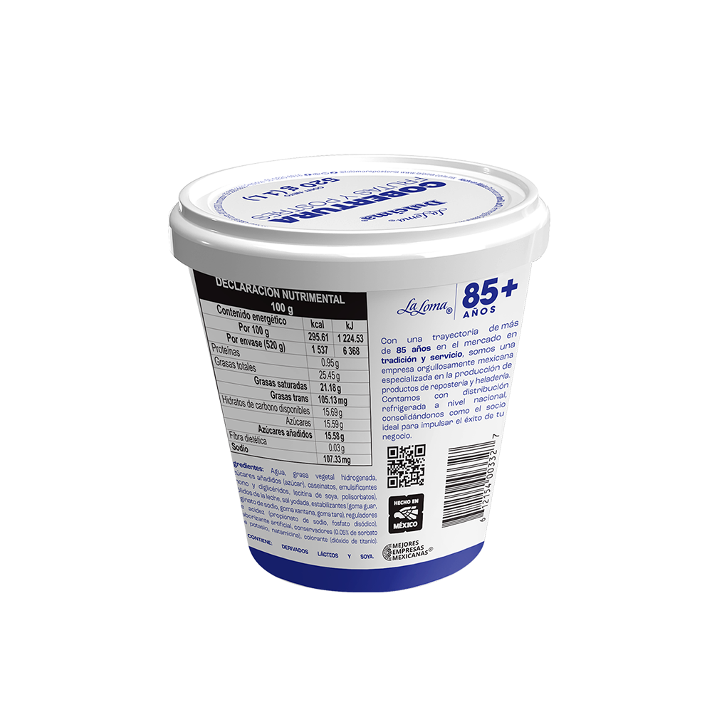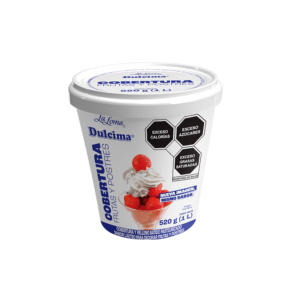 Dale vida a tus postres con Dulcima® Crema Batida Frutas y Postres, una crema lista para usar diseñada para profesionales que buscan practicidad, sabor y presentación impecable. Su textura tersa y cremosa permite cubrir, rellenar y decorar frutas, gelatinas, helados, cocteles de fruta, tartas y bebidas, manteniendo acabados estables por más tiempo, incluso en condiciones de temperatura variables.