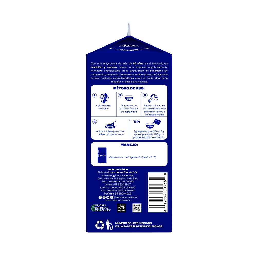 • Buena estabilidad en frío, manteniendo textura firme tras el batido