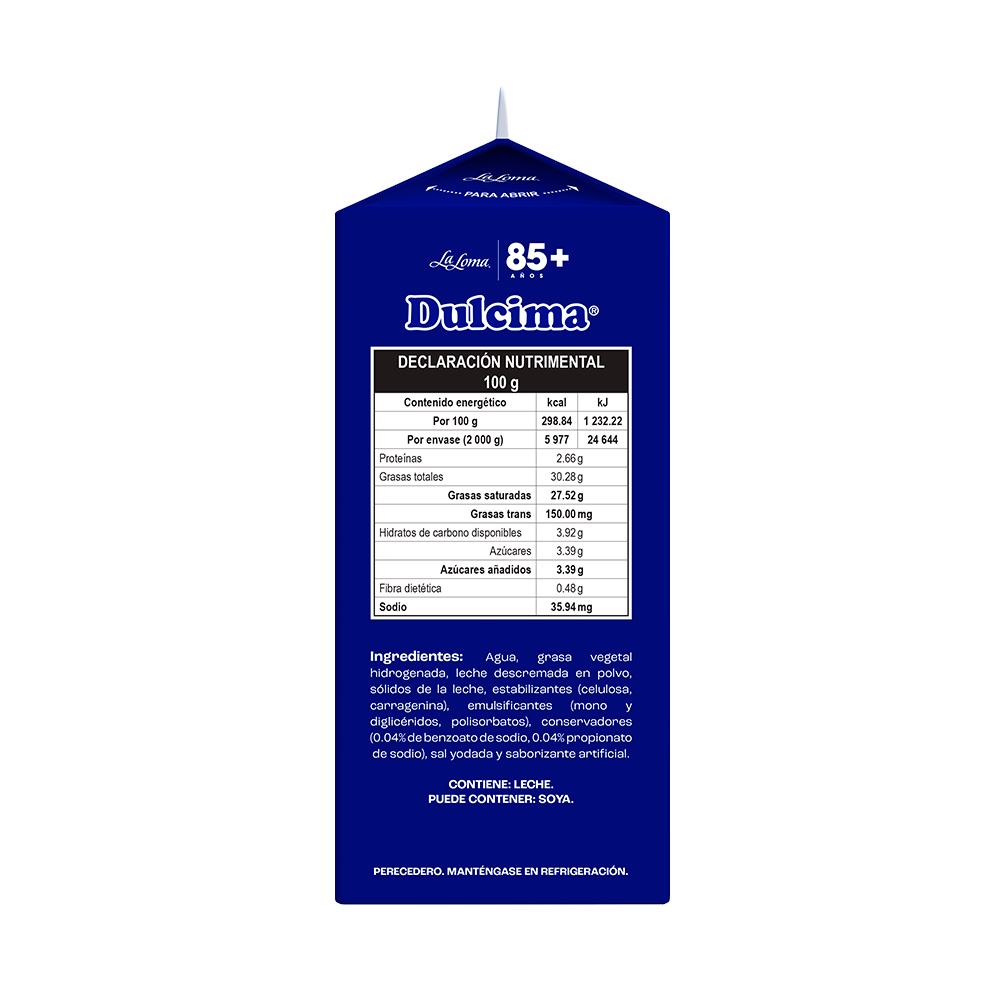 Dulcima® Crema Vegetal para Batir es la opción versátil, práctica y rentable para profesionales de repostería y cocina creativa. Su sabor lácteo neutro, sin azúcar añadida, permite integrarla en recetas dulces y saladas, desde postres, bebidas y frutas hasta cremas, pastas y salsas ligeras.