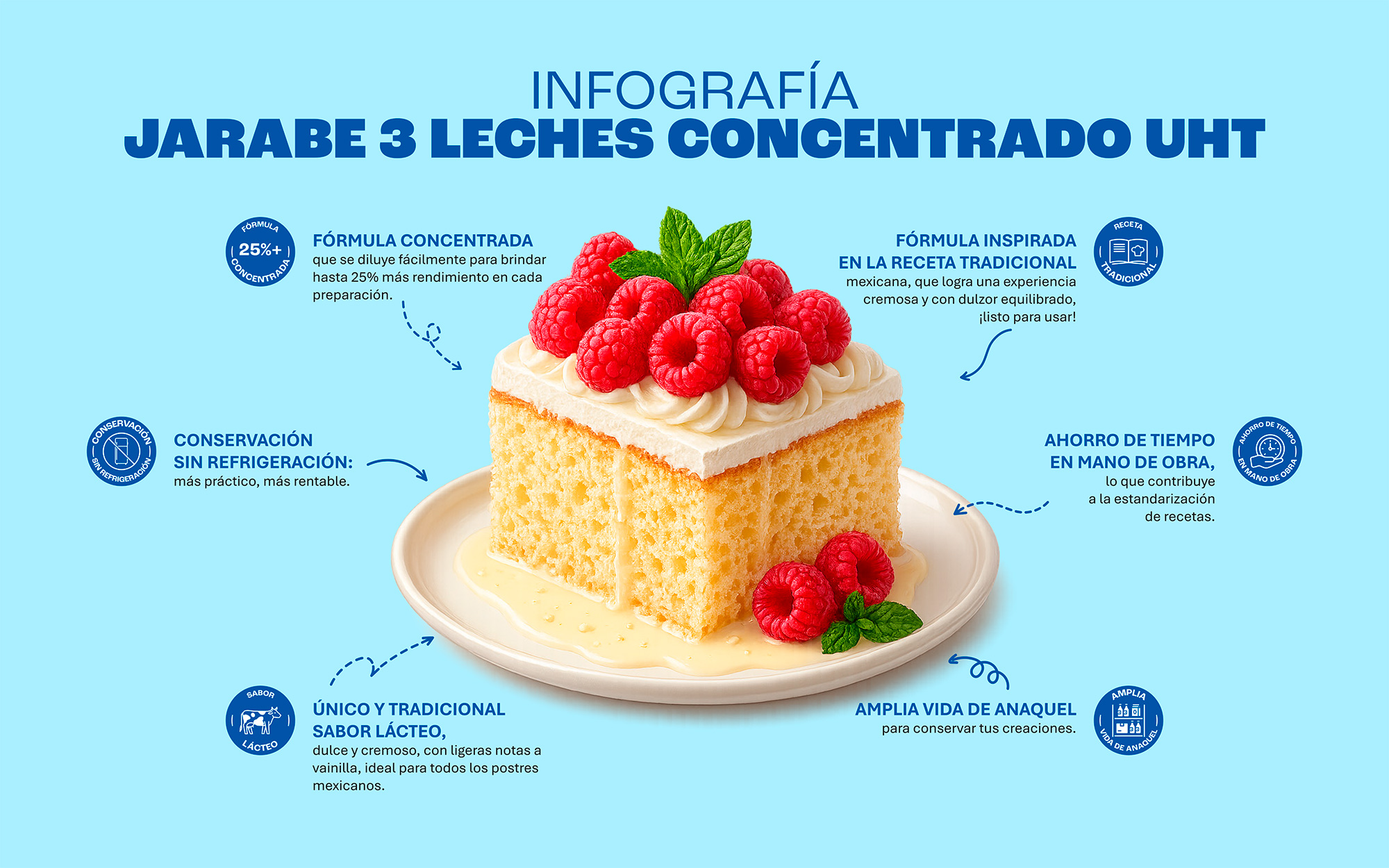 El sabor del clásico de tres leches en versión UHT concentrada ¡que rinde más!