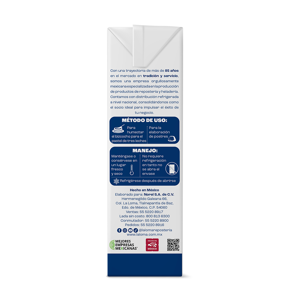 Con una textura cremosa y de fácil absorción, asegura postres jugosos, consistentes y memorables. Su dulzor equilibrado realza el perfil clásico de las tres leches (entera, evaporada y condensada), evitando preparaciones complicadas.