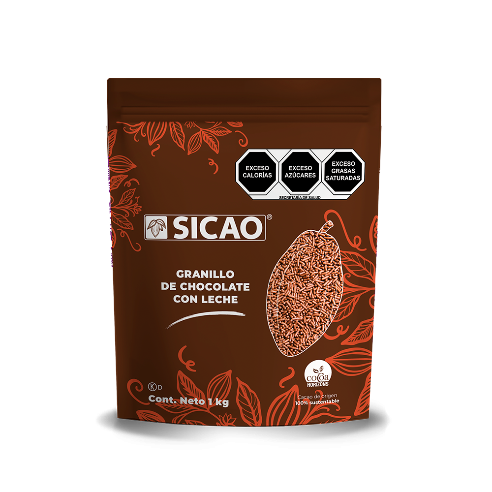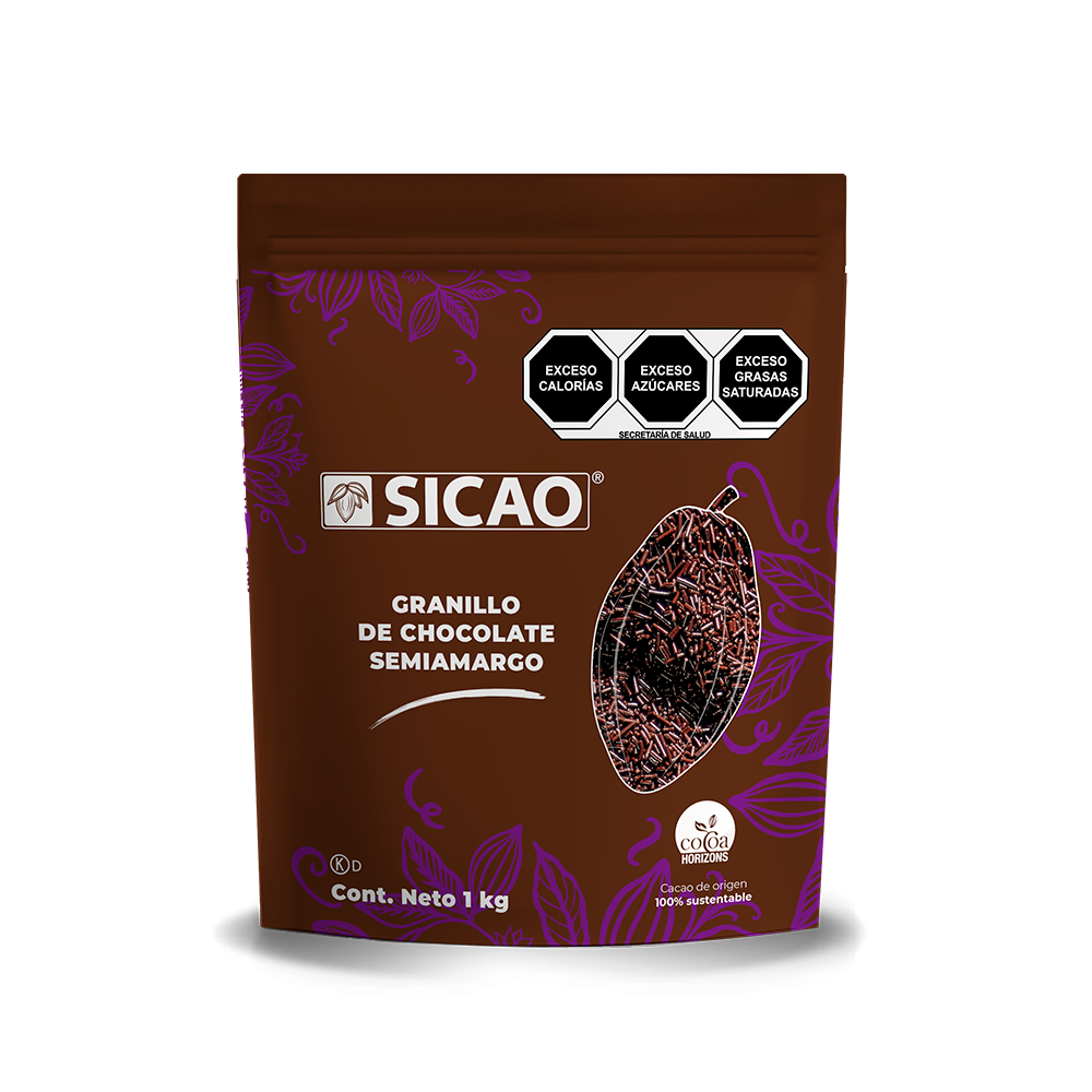 El Granillo de Chocolate 100% auténtico, elaborado en México con lácteos, manteca y granos de cacao de alta calidad, es la decoración perfecta para panadería y repostería profesional. Su grosor óptimo y presentación en tres sabores realzan el acabado visual de pasteles, galletas, panqués y más.