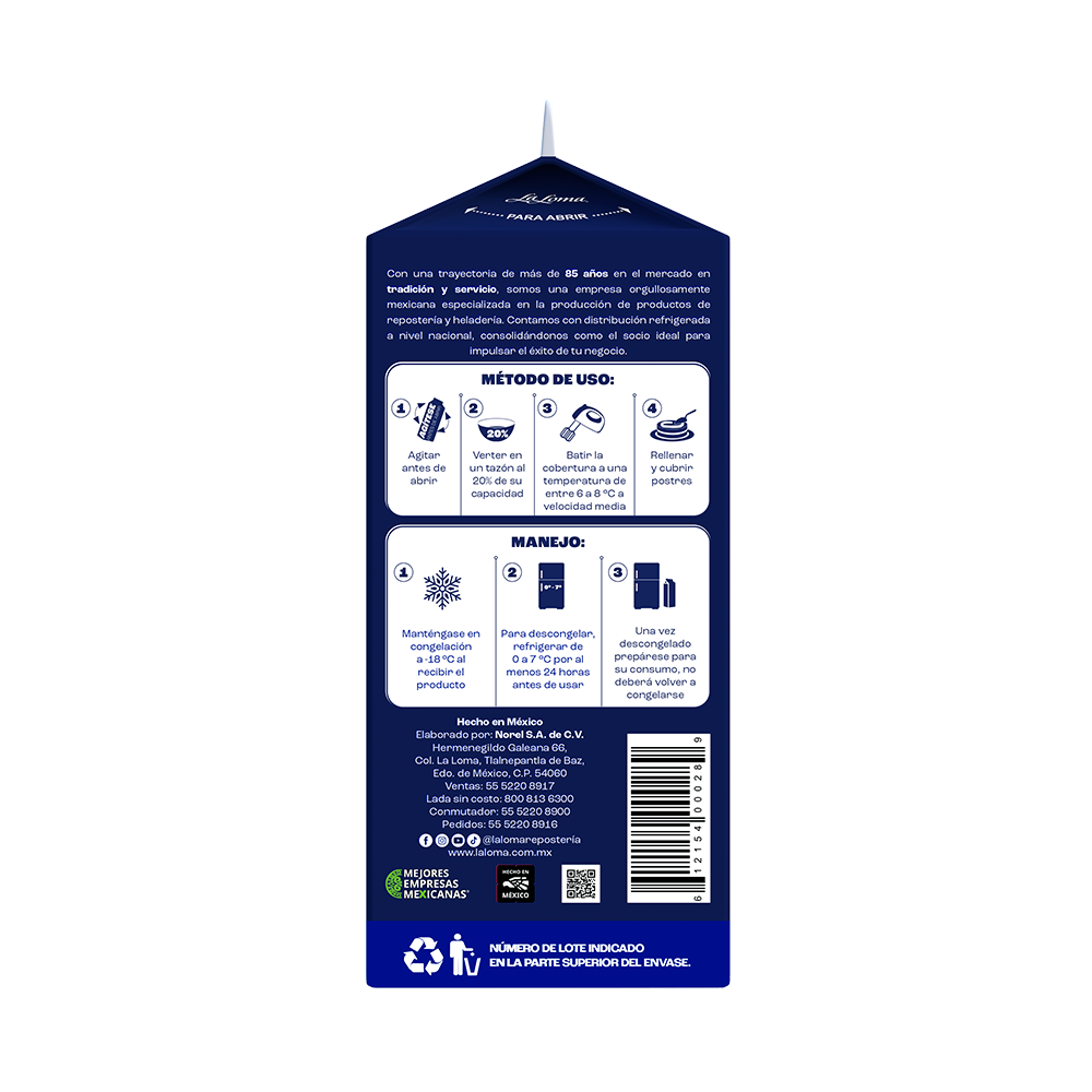Una vez descongelado, conservar en refrigeración entre 0°C y 5°C para mantener textura, sabor y estabilidad.